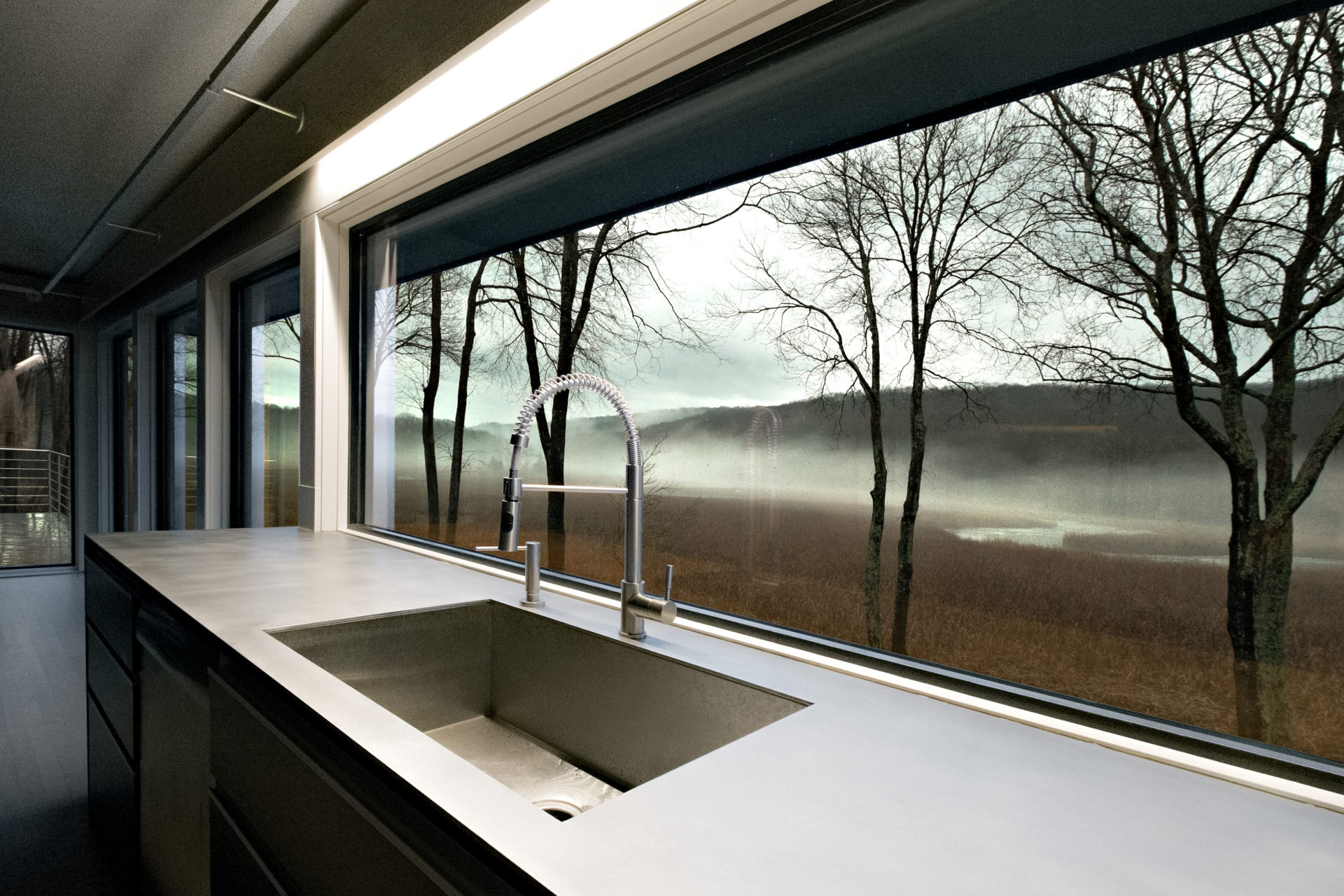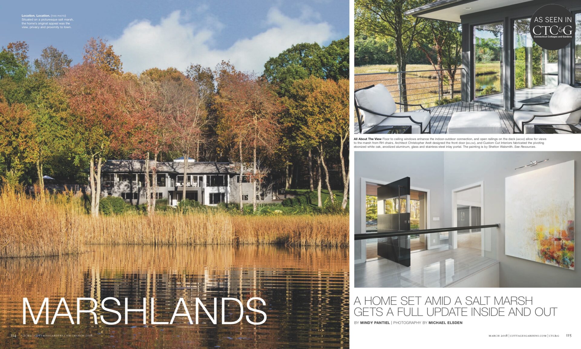 Located on a marsh in the upper reaches of the Lieutenant River in Old Lyme, the existing house was well-sited and well-built, but the design failed to exploit the views and more importantly was a confused combination of contemporary and traditional elements. The new homeowners, a successful businesswoman and an accomplished artist and photographer, were interested in creating a fully-contemporary environment to open up space, connect indoors with outdoors, display artwork and showcase the husband’s distinctive photographs.
